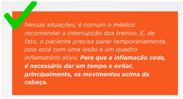 Portanto, o processo não pode se resumir ao tratamento do quadro inflamatório, especialmente quando a pessoa deseja retornar ao box (academia de treino).