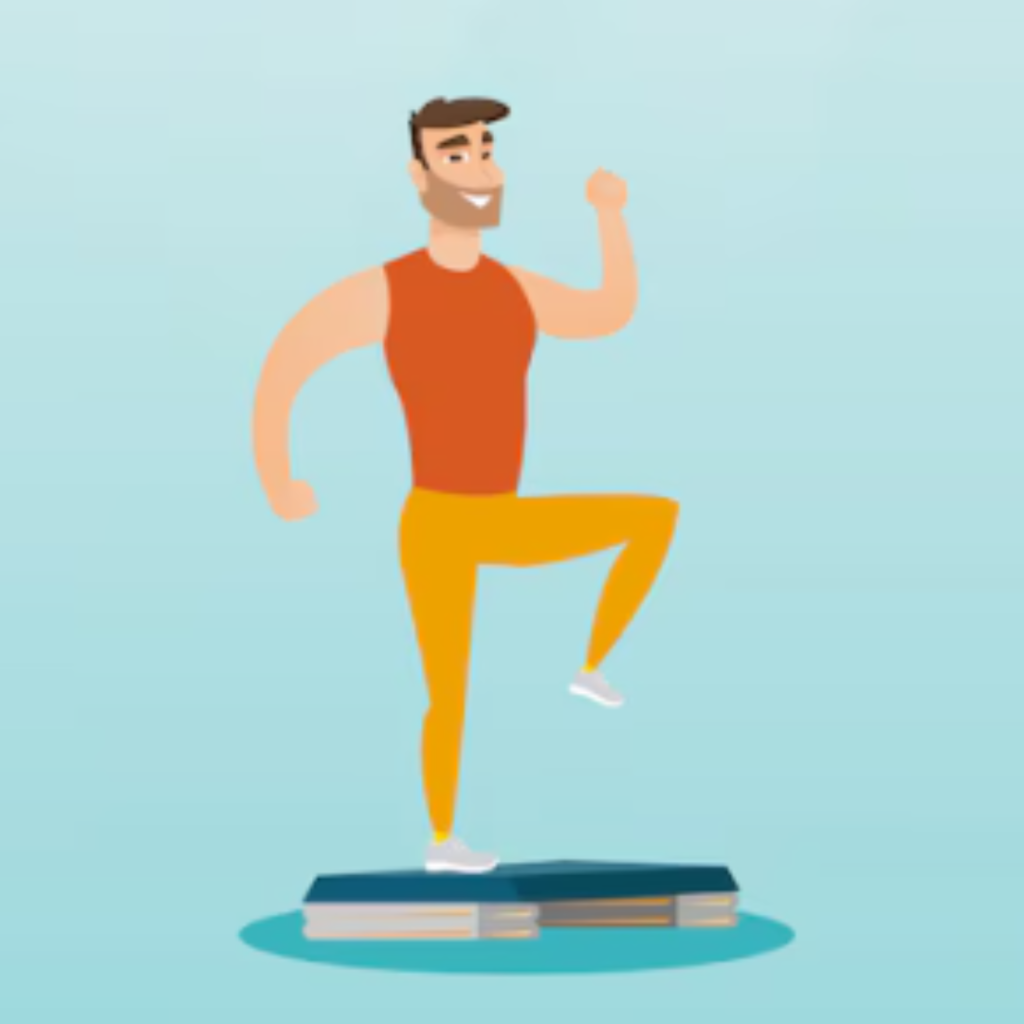 O segundo exercício tinha um nível de complexidade maior e consistia em pedir para ele pular para cima de um step. Ao pousar em cima do step ele tinha que se equilibrar em cima de uma perna só. Ou seja, ele fazia esse movimento recebendo o impacto do pulo.