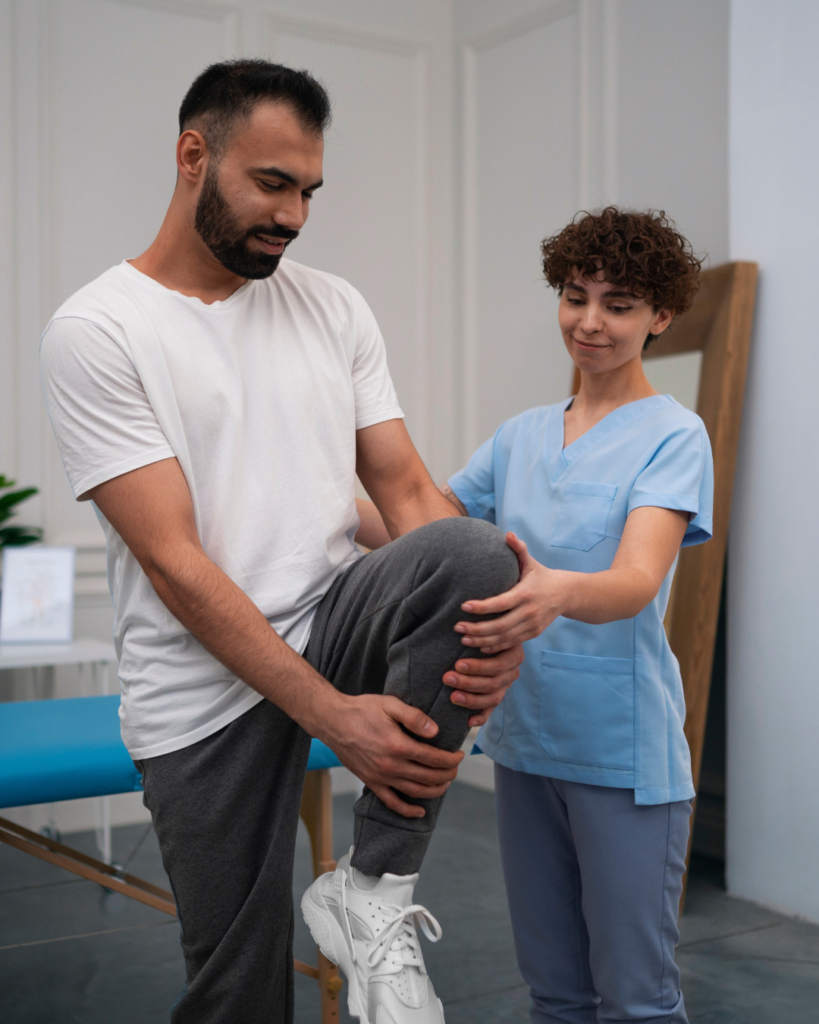 O primeiro passo é tratar a fase inflamatória para eliminar a dor e o edema. Além disso, utilizamos protocolos de redução de dor como exercícios terapêuticos, alongamentos, massagens e equipamentos que ajudam no processo de cicatrização, redução da inflamação e edema em seu joelho.