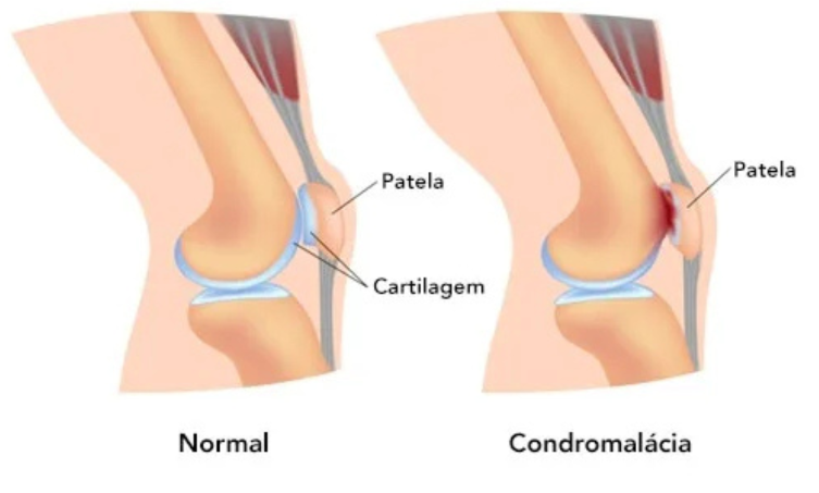 Como a patela desliza por cima do osso do fêmur, quando ela faz um trajeto de forma muito irregular, provoca um desgaste não só do tendão patelar, mas também da superfície articular do fêmur com a patela, provocando as duas condições simultaneamente: a tendinite e a condromalácia patelar.