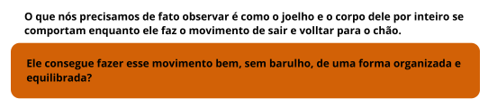 Sempre focando na qualidade do movimento e observando se ele estava firme, se estava bem equilibrado e se ele conseguia fazer uma boa aplicação de força contra o chão.